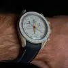 Monaco for Moonswatch in black with white contrast stitching is, in our opinion, a good match for the following Moonswatch models: